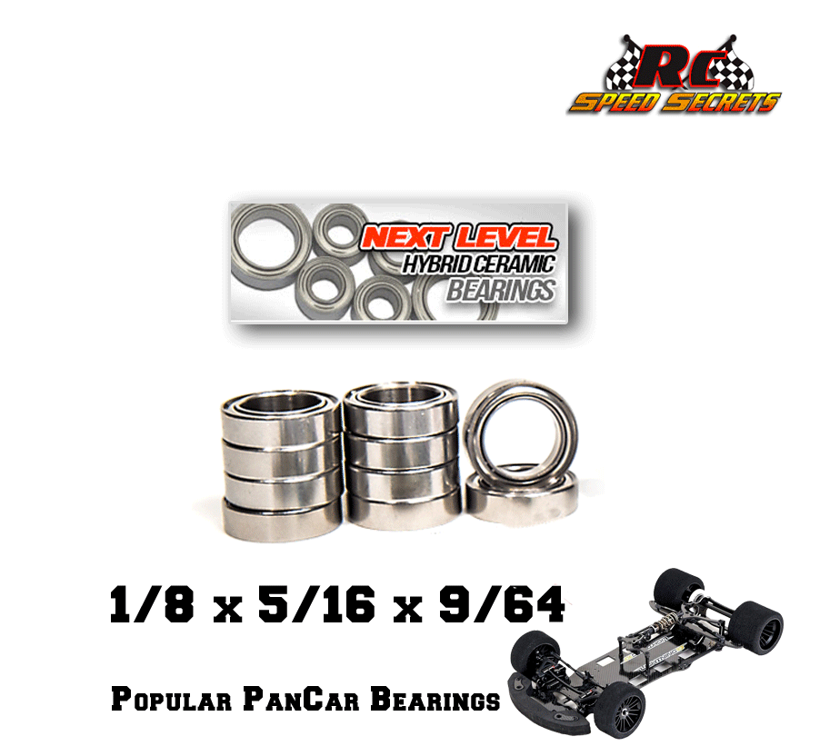 RCSS Next-Level Hybrid Ceramic Bearings - 2 pcs 2 pcs (1/8 x 5/16 x 9/64) FLANGED (Popular Bearings used in Pan Cars)